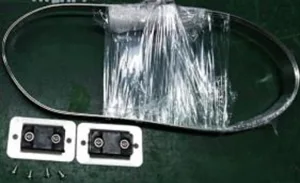 ⚫ Нажмите скользящее кольцо на предварительно сформированную оптическую волокна в направлении стрелки, чтобы удалить пылевую крышку; Нажмите кнопку, чтобы вытащить пылевую крышку на адаптере в направлении стрелки.